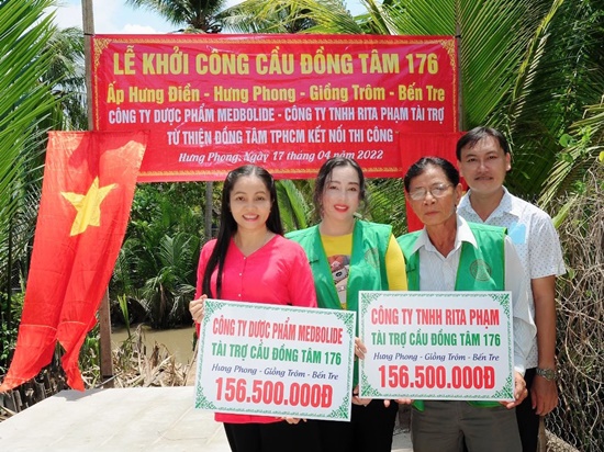 Sáng ngày 17/4/22, cầu Đồng Tâm 176 được khởi công tại ấp Hưng Điền xã Hưng Phong. Cầu trên tuyến chính để trẻ em đến trường và vận chuyển dừa, nông sản… Cầu xây mới dài 30m rộng 2,5m tải 5 tấn kinh phí 313.000.000đ được Công Ty Dược phẩm MEDBOLIDE và Công ty TNHH RITA PHẠM đồng tài trợ. Từ thiện Đồng Tâm sẽ xây đẹp bền cây cầu này lưu dấu ấn cho xứ dừa Đồng Khởi. Lãnh đạo xã và bà con mừng lắm vì cầu cũ hẹp đã xuống cấp, bể mặt sàn, hư lan can không an toàn và không còn sức tải nữa nguy cơ sập khi mùa nước nổi tràn về. Xin tri ân 2 công ty nhiều!